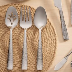 - Hammered 9-piece hostess serving spoon set: includes 3 serving spoons, 3 slotted serving spoons, 3 serving forks