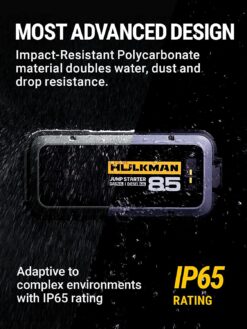 - [MULTI-PROTECTION]: With its integrated design of the battery protection scheme and built-in intelligent clamps, the HULKMAN jump starter is safe and fully insulated. Its 10 types of protection include spark-proof, mistake-proof and reverse-polarity protection to free you from malfunction concerns like a short-circuit or sparks. Use it to jump start your car confidently!