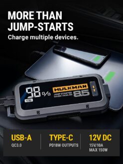 HULKMAN Alpha85 Smart Jump Starter 2000 Amp 20000mAh Car Starter for up to 8.5L Gas and 6L Diesel Engines with Boost Function for Totally Dead Battery 12V Lithium Portable Car Battery Booster Pack
