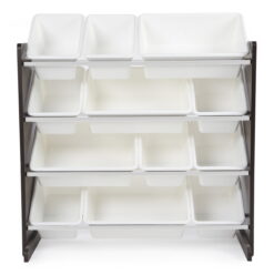 Humble Crew Children Plastic Organizing Rack with 12 Bins, Espresso and White