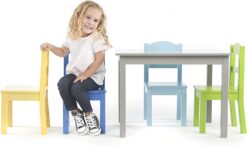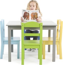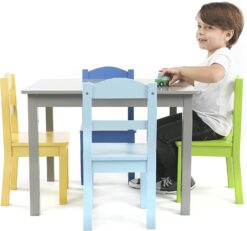 - Sturdy engineered wood 5-piece set, 1 kid’s table and 4 chairs.