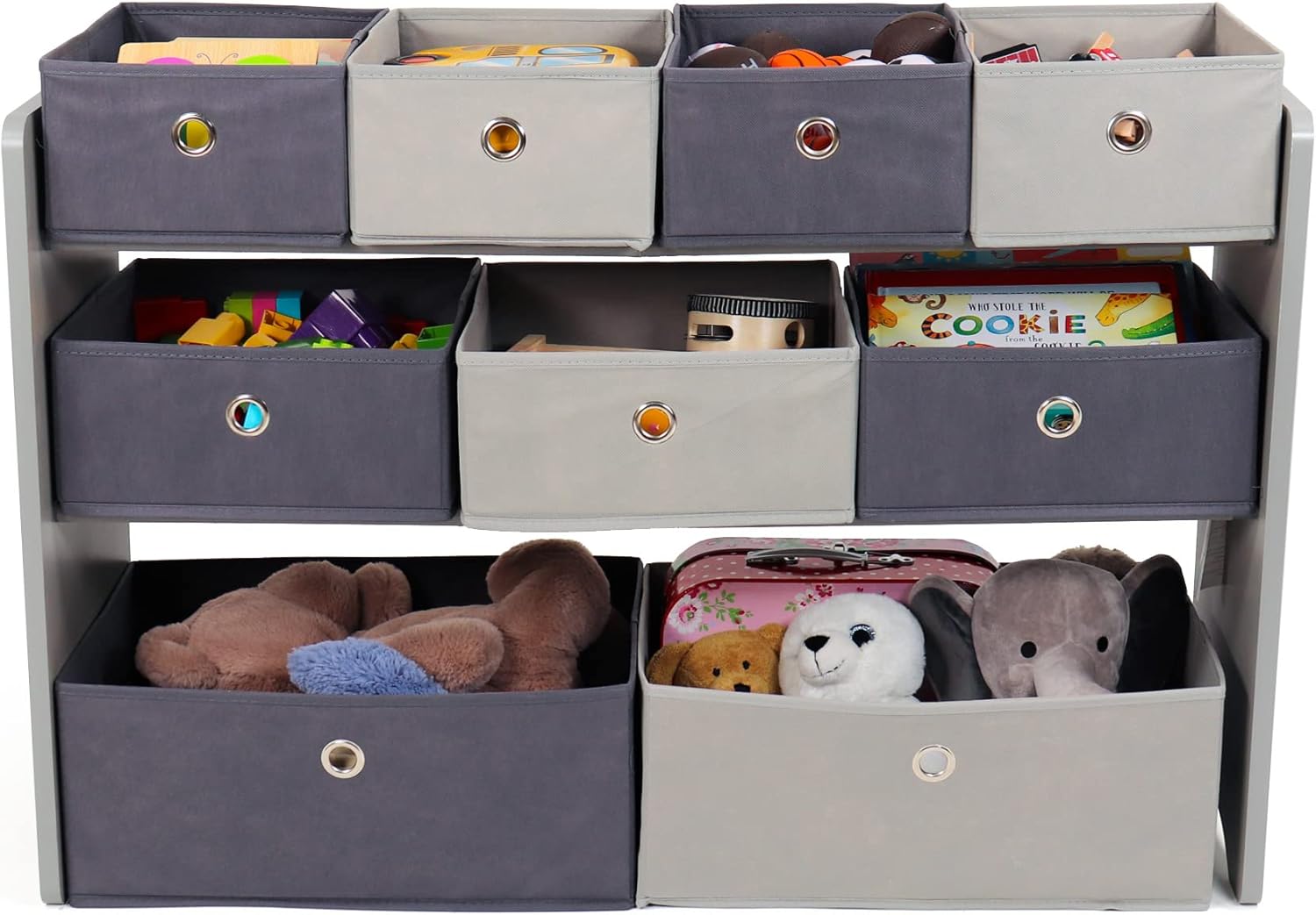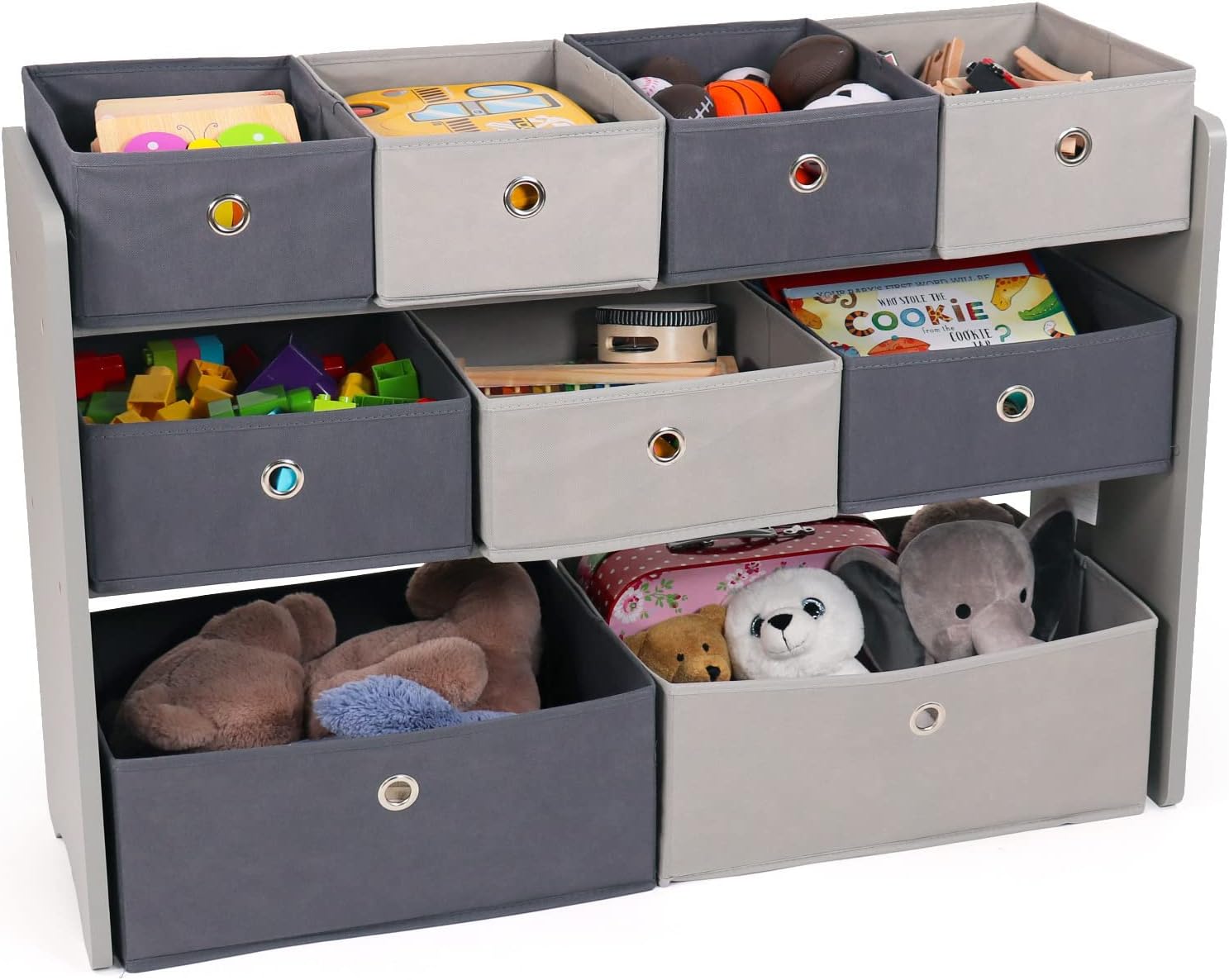 Humble Crew Kids Toy Organizer with 9 Storage Fabric Bins, Grey