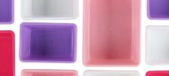 - 12 durable plastic storage bins, 8 standard and 4 large interchangeable storage bins. BPA and phthalate free.