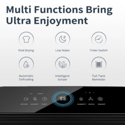 - 【Intelligent Control Panel】 The Control Panel Of This Bathroom Dehumidifier Features A Simple Design With Informative Buttons, Including Drying For Stronger Dehumidification, Humidity For Customized Setting, Timer For Auto-Start And Auto-Stop. More Intelligent Panel Is Designed For Easier Operation.