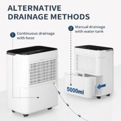 - 【Easy Drain Access 】 The Water Tank Can Be Taken Out For Drainage When It Gets Full. The Alternative Method Is To Use The Accessory Dehumidifier Hose For Continuous Drainage. Simply Connect The Continuous Drainage Hole To The Floor Drain Or A Collecting Vessel With The Hose, Saving More Time And From Frequent Emptying.