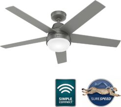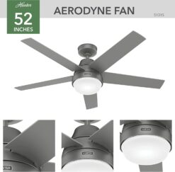 Hunter  Aerodyne 52-in Matte Silver LED Indoor Smart Ceiling Fan with Light Remote (5-Blade)