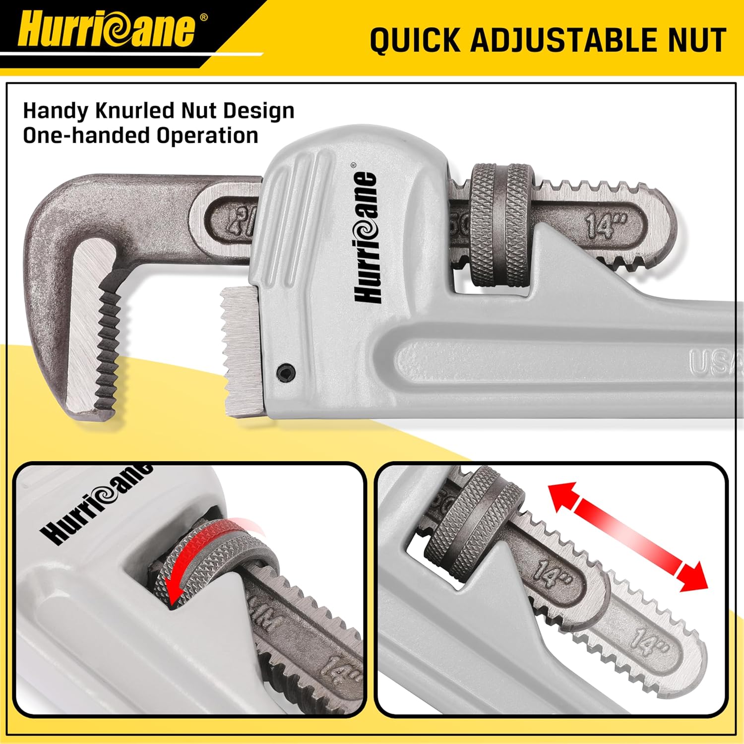 HURRICANE 3-Piece Aluminum Pipe Wrench Set,10″, 14″, 18″, Heavy Duty Adjustable Plumbing Wrench Set, 40% Lighter, Wider Application Range