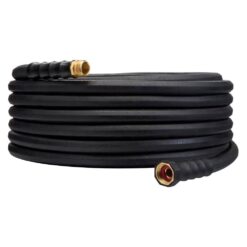 The Husky 5/8 in. x 50 ft. Heavy-Duty Rubber Water Hose is a high-quality hose that is 40% lighter than standard rubber hoses. Crafted from premium EPDM rubber with reinforced polyester braiding, it’s built strong and can handle hot water up to 212°F. Flexibility is maintained in extreme conditions, ranging from, -50°F to plus 190°F. Whether you’re watering your home garden or tackling tough tasks around the farm, this hose is a dependable choice for your watering needs.