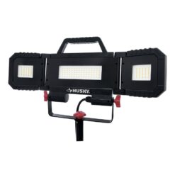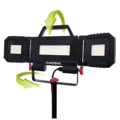 The Husky multi-directional LED Work Light has the high output of 7000 Lumens. Its great design allows it to be cool to the touch. It can be detached from tripod for easy mobility, can be used in many locations. With its innovative structure, side panels can be folded backwards and frontwards, and it can provide 360-degree coverage of illumination. The adjustable LED side panels can supply greater light concentration where needed. 5ft power cord included.