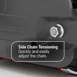 - Side-mounted tensioning system on this 16 inch chainsaw is positioned for easy chain adjustments