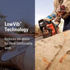 - For comfortable handling, this Husqvarna chainsaw features LowVib technology uses dampeners between the engine and chassis to reduce vibrations