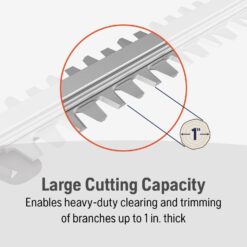 - LARGE CUTTING CAPACITY: Hedger is capable of heavy-duty clearing and trimming of branches up to 1 inch thick, plus a convenient un-jam button makes it simple to clear jams and get you back to work