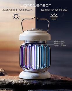 - 【Dusk-to-Dawn Mode】The bug zapper features a waterproof switch that offers 3 modes: ON, OFF, and AUTO mode. In the AUTO mode, the bug zapper will autonomously switch on and off based on the light changes, allowing it to operate at dusk and automatically turn off at dawn without requiring manual control.