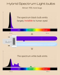 - 【 Hybrid Spectrum】15W hybrid regular UV and black UV dual bulbs emit a broader light spectrum, which is more effective in attracting a variety of pests, including flies, fruit flies, mosquitoes, gnats, and moths, etc.