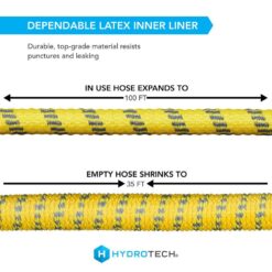 HydroTech ProSeries 100 ft. Expandable Burst-Proof Hose is perfect for all your watering needs and can be easily transported to anywhere you work. Our ProSeries expandable hose is designed for heavy duty cleaning and large jobs. Great for farming and agriculture sites, it gets the job done faster. Guaranteed not to burst or break, it is still lightweight and durable. The hose flows with optimal water pressure at all times thanks to Max Flow Technology which allows water to flow 2x faster than other expandable hoses on the market. Includes a 10 year warranty.