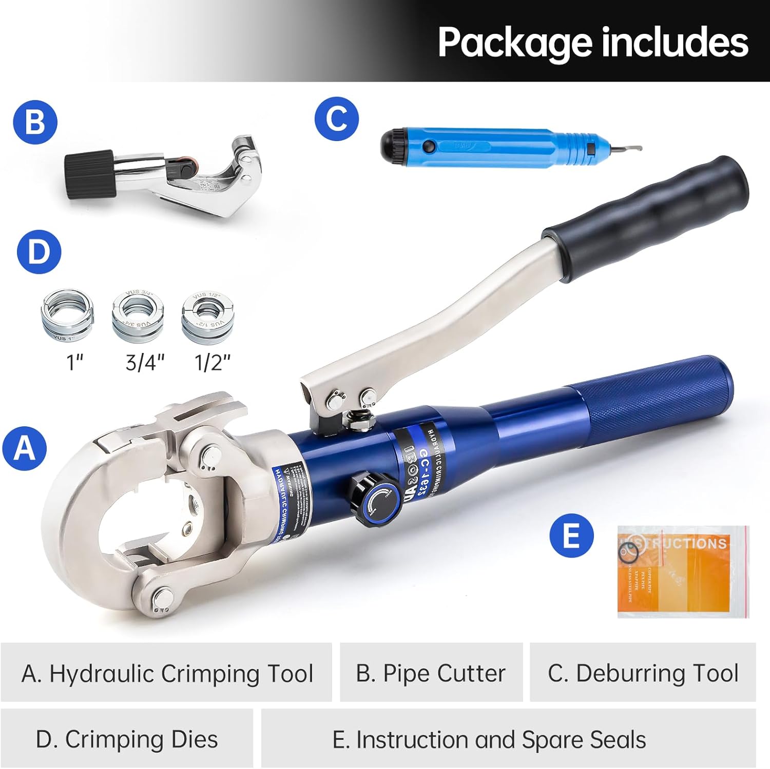 IBOSAD Copper Tube Fittings Hydraulic Pipe Crimping Tool with 1/2″,3/4″ and 1″ Jaw Copper Pipe Press Crimper Pressing Pliers, with Pipe Cutter