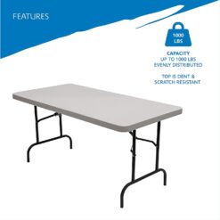 Iceberg – 65513 30″ x 60″ Folding Table, Platinum, IndestrucTable TOO 500 Series (MADE IN USA)