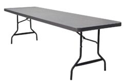 Each table’s top is made of dent and scratch-resistant, blow-molded, high-density polyethylene atop a steel frame that can hold from 500 to 1,000 pounds of evenly distributed weight depending on the table –that’s a lot of potato salad! When your work or play is done, the legs fold into recessed channels for storage. You’ll be the hero of every gathering, saving the day for barbecues, and get-togethers.