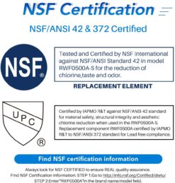 𝗖𝗲𝗿𝘁𝗶𝗳𝗶𝗰𝗮𝘁𝗶𝗼𝗻𝘀- ICEPURE RWF0500A replacement for Whirlpool 4396508 refrigerator water filter bears major Authoritative Certifications on markets, such as NSF/ANSI 42 & 372 Lead-Free from NSF and IAPMO, European Food Grade Regulations EC-1935/2016, ROHS, REACH, BPA-Free, TUV and Australian Water Mark.