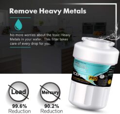 The refrigerator filter is uncomplicated. NSF/ANSI 53 Certified by IAPMO and NSF reduces 99.60% of Lead, 89.30% of Mercury.