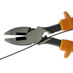The Insulated Linesman Pliers are IDEAL for cutting hardened wire, bolts and ACSR, and can crimp bare and insulated terminals. The pliers are 9-1/2 in. long, and are made of drop-forged high carbon steel that withstands the toughest of applications. It features induction-hardened blades and serrated jaws that provide long-term durability and the high-leverage design offers 40% more cutting power. It meets OSHA requirements for insulated tools, ASTM F1505-01 and IEC 60 900 standards.