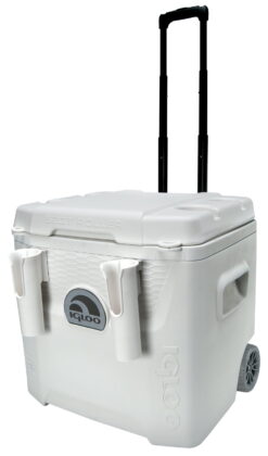 Fine-tuned for your next fishing trip, the Igloo 52-Quart Marine 5-Day wheeled cooler with cup holders combines grippy, non-marking wheels with a full suite of marine-grade features. From UV protection to rust-proof stainless-steel hardware, this cooler will keep drinks and snacks (or the catch of the day) cold, fresh and there when you need it. Designed to stay where you are no matter the rough or wet surface. White indoor and outdoor 52-Quart wheeled cooler.