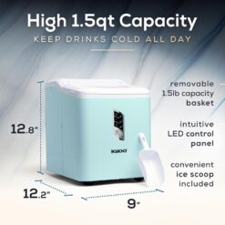 - ICE SCOOP & BASKET: Removable, sturdy 1.5 lb capacity ice basket and convenient scoop are included for you to easily take ice from the machine and fill your cup, water bottle, or whatever you need to fill with ice.