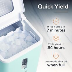 - HIGH ICE YIELD: The water tank can hold up to 1.5 quarts of water; keep it filled and this unit will produce 26 pounds of ice in a 24-hour period. That’s enough ice to keep drinks refreshingly cold all day long.