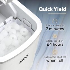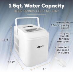 Igloo Automatic Self-Cleaning Portable Electric Countertop Ice Maker Machine With Handle, 26 Pounds in 24 Hours, 9 Ice Cubes Ready in 7 minutes, With Ice Scoop and Basket, White