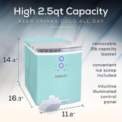 Igloo Electric Countertop Ice Maker Machine – Automatic and Portable – 33 Pounds in 24 Hours – Ice Cube Maker – Ice Scoop and Basket – Ideal for Iced Coffee and Cocktails – Aqua