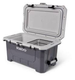 Lightweight yet heavy-duty! Our top-performance, super durable Igloo 70 quart IMX cooler in Gray features Ultratherm insulation that provides advanced ice retention (the longest-lasting among all our coolers!) and weighs 40% less than coolers with similar performance. Thanks to the built-in features like a bottle opener, cup holders, lockable lid, fish ruler and wire basket the spacious 70 quart IMX is the bestselling cooler that countless adventurers rely on.