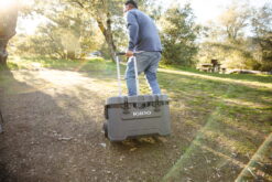 When the outdoors beckon, Igloo Overland is ready. From superior ice retention to little features that go a long way, Igloo built the wheeled, adventure-ready Overland 52-Quart Roller Cooler to see you through your journey outdoors, no matter what terrain you must cover to get there — all while keeping your provisions fresh. And it’s made right here at Igloo’s manufacturing plant in Texas. The Overland Roller cooler won’t let you down. With extra-thick 1.5-inch foam-insulated walls and an insulated lid, you’ll get dependable, long-lasting ice retention, so your essential food and drinks stay chilled. The lid shuts securely using the durable rubberized latches, so things won’t spill out. In addition, the built in locking plate allows you to lock your cooler for added security. The 52-quart spacious interior holds plenty of provisions while still being easy to roll wherever you’re headed, thanks to its oversized, all-terrain, soft-glide wheels and locking, telescoping handle. Igloo also crafted Overland with convenient features, like a bottle opener, UV inhibitors that’ll help prevent sun damage and a threaded, tethered drain plug to make emptying any melted ice at the end of your trip practically effortless.