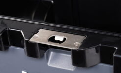 - Lid includes a locking plate for added security