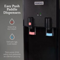Igloo Top Loading Hot and Cold Water Dispenser – Water Cooler for 5 Gallon Bottles and 3 Gallon Bottles – Includes Child Safety Lock – Water Machine Perfect for Home, Office, & More – Black Stainless
