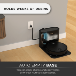 - Auto Empty Base – After cleaning, the Eclipse intelligently navigates back to the Auto Empty Base to automatically empty the dustbin contents and recharge. The bag lined bin holds weeks worth of debris so you don’t have to!