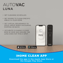 - Connected Convenience – Connect Luna to Wi-Fi for voice and app control when you want it. Use the iHome Clean App to manage Luna from anywhere and connect to Alexa or Google Assistant to control your AutoVac by voice.