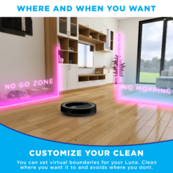 - HomeMap 2.0 – Front LIDAR Technology scans your Floor Plan and allows for customized cleaning. Set Virtual Boundaries to avoid areas when Vacuuming and Mopping or Both. Set Rooms to clean specific areas in your home. Accurate cleaning cleans row by row and ensures the Luna does not miss a spot!