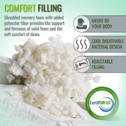 - Shredded Memory Foam Pillow – Bamboo Shredded Memory Foam Pillow aligns your neck, back and shoulder. These Bed Pillows are perfect for that much-needed rest and recovery.