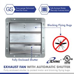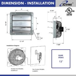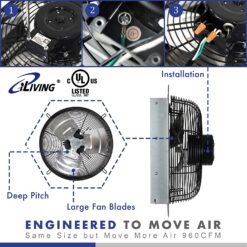 iLiving ILG8SF12V – 12″ Wall Mounted Exhaust Fan – Automatic Shutter – Variable Speed – Vent Fan For Home Attic, Shed, or Garage Ventilation, 960 CFM, 1400 SQF Coverage Area (Power Cord Not Included)