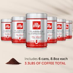 illy Drip Coffee – Ground Coffee – 100% Arabica Ground Coffee – Classico Medium Roast – Notes of Caramel, Orange Blossom & Jasmine – No Preservatives – Mild & Balanced – 8.8 Ounce, 6 Pack
