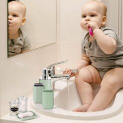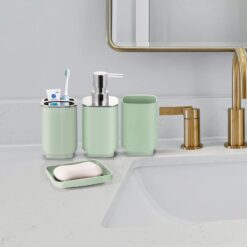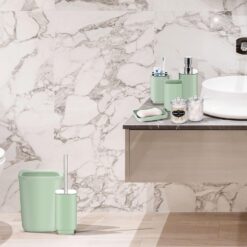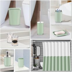 IMAVO Bathroom Accessory Set – 8 Pcs Green-B Bathroom Accessories Set with Trash Can, Soap Dispenser, Soap Dish, Toothbrush Holder, Toothbrush Cup, Toilet Brush Holder, Qtip Holder Dispenser with Labels