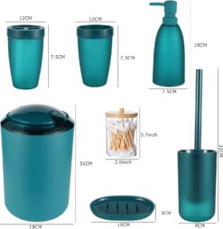 - MULTIFUNCTIONAL BATHROOM ACCESSORY SET – 8 pieces bathroom accessories set complete, including 1*toothbrush holder, 1*toothbrush cup, 1*soap dispenser, 1*soap dish, 1*toilet brush holder, 1*trash can, 6*Qtip holder. Makes the bathroom both well organized and adds a simple textured style.