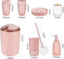 iMucci 8PCS Pink Bathroom Accessories Set – with Trash Can,Toilet Brush,Toothbrush Holder, Lotion Soap Dispenser, Soap Dish,Toothbrush Cup,Qtip Holder