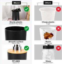 - STURDY AND DURABLE PLASTIC – iMucci 8 pieces bathroom accessory set is known for its incredible strength and long-lasting.Whether you’re looking for a kit that extreme Enduring or stylish, its lightweight nature and versatility make it the perfect choice for a wide range of your bathroom decor.