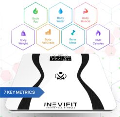 INEVIFIT BODY-ANALYZER SCALE, Highly Accurate Digital Bathroom Body Composition Analyzer, Measures Weight, Body Fat, Water, Muscle & Bone Mass for 10 Users. includes batteries, White