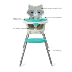 Infantino Grow-with-Me 4-in-1 Convertible High Chair, Raccoon-Theme, Space-Saving Design, Booster and Toddler Chair, for Infants & Toddlers 3M-36M