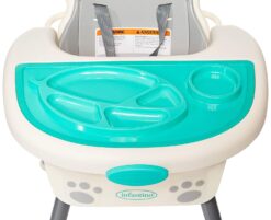 This 4-in-1 high chair transforms into a space saver, booster and toddler chair. Features a dishwasher-safe multi-functional meal mat and easy-release removable food tray. Food tray and seat back are adjustable for ideal positioning from tiny to toddler. Cushioned, low-density foam padding is soft for baby, and easy to clean for parents.