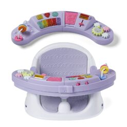 The Music and Lights 3-in-1 Discovery Seat and Booster is an interactive play place, snack-time seat, and secure booster all in one. Support early sitters in seat positioner mode, while keeping them happily engaged with six fun activities including a light-up piano with 20 songs and sounds.