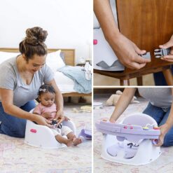 Stimulating play pods encourage sensory development and help build fine motor skills, and are removable for floor play or on-the-go fun. When your little one is ready for a snack, slide the toy pods apart to reveal a meal time tray with cup holder. Convenient security straps allow the booster seat to easily attach to a kitchen chair, and the soft foam seat is comfortable for baby and easy to wipe clean after mealtime.