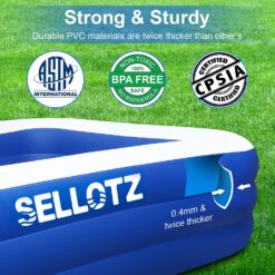 - 【Safe & Durable Retangular Inflatable Pool】: SELLOTZ swimming pool for kids is made with Phthalate and lead free, Using BPA-free materials that meets the standards of international children’s toys, which is twice thicker than most in the market, reducing the risk of punctures and ensuring a long service life.